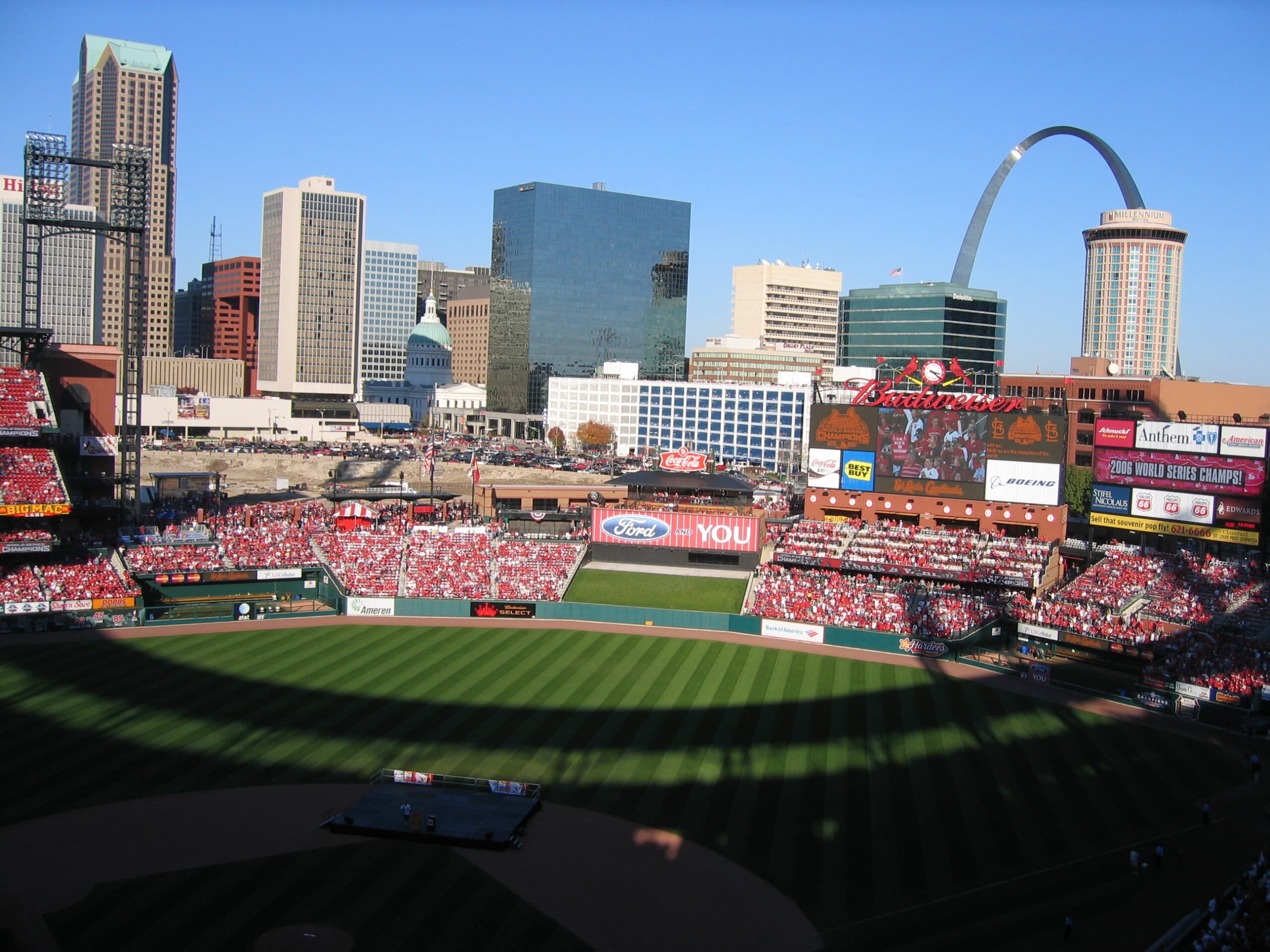 “Play Ball!” Fresh cut field at the Cardinal Stadium, Downtown St. Louis Missouri.